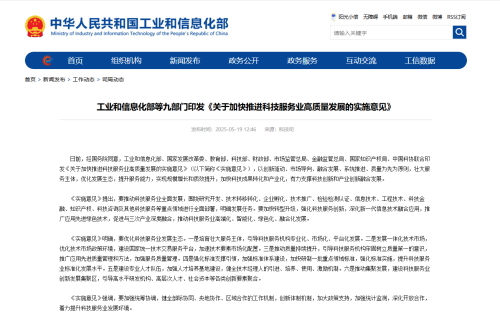 • 工信部等九部門聯(lián)合印發(fā)《關(guān)于加快推進(jìn)科技服務(wù)業(yè)高質(zhì)...